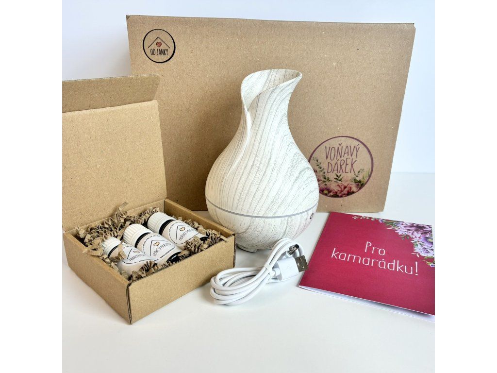 3. Dárkové balení difuzéru a 3 kusů vonných olejů s přáním Pro kamarádku.