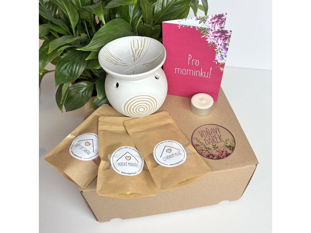 1. Dárkové balení vonných vosků, sojové čajové svíčky, aromalampy a přání.
