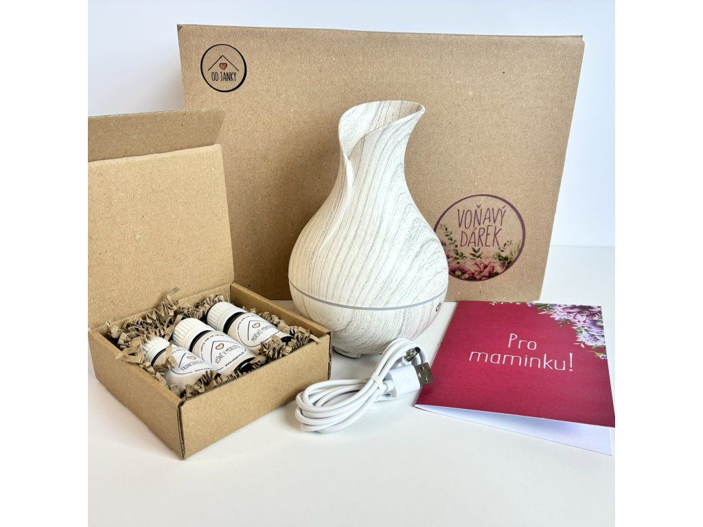 Balení obsahuje 200 ml aromadifuzér bílé dřevo a 3 ks vonných olejů dle našeho výběru.