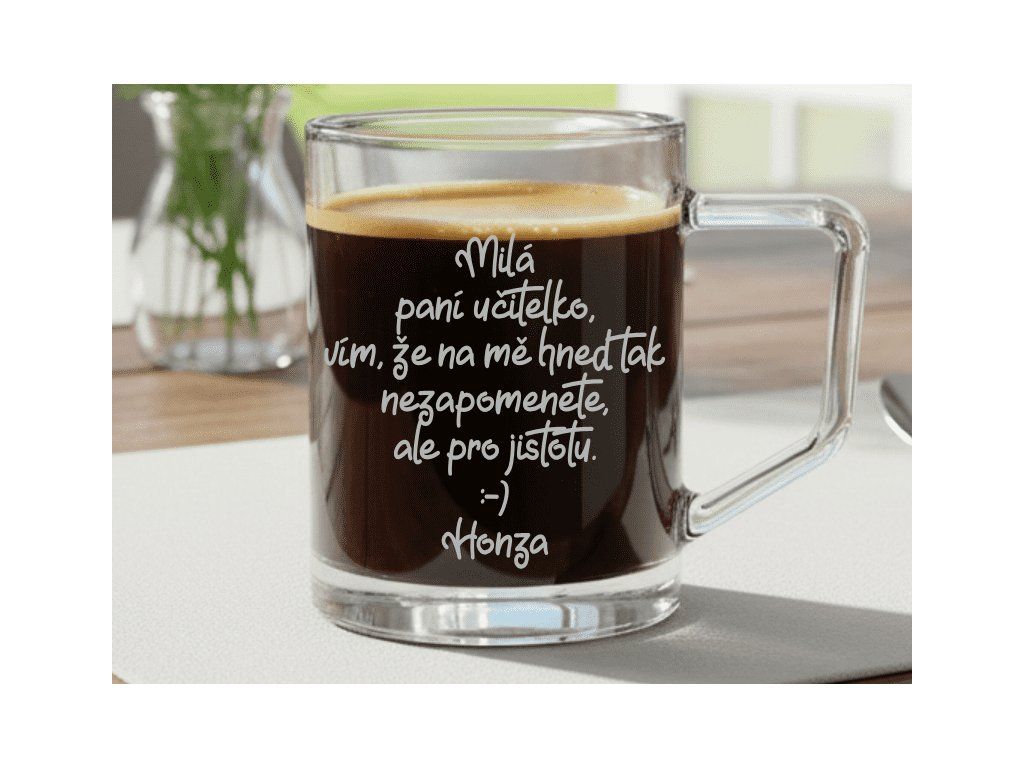 Originální pískovaný hrnek jako milé poděkování pro ty, kteří se celý rok starají, učí, vedou a podporují. Vzkaz je vypískovaný a doplněný o jméno dítěte na přání (napíšete do poznámky, kterou přidáte ve třetím kroku objednávky pod adresou). Skvělý dárek ke konci školního roku, na rozloučenou nebo jen tak pro radost.
